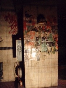 The Subway station, the tunnel and the train were all designed and built in a fairly tiny commercial space. I endeavored to give it a mini Grand Central feel. We used real tiles and classic details that were tarnished by time, misuse and neglect.
