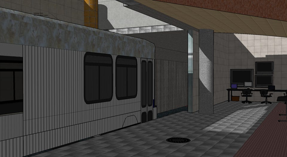 I designed a tunnel with emergency doors and a refurbished subway car that was used as a medical lab.
