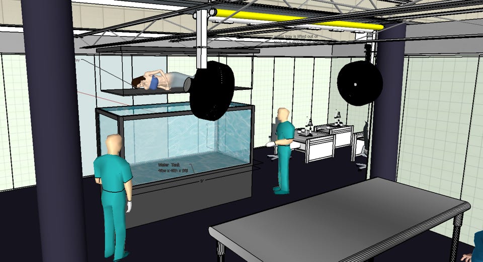 End of second season, also saw the need for our human cast to descend down to the mermaid’s territory. We were tasked to build a believable sub in 1 month .. This would have been impossible without the talents of Baron Shaver and his Construction crew, who built the sub out of sheet aluminum in short time .. With the advice from Nuytco Research ltd (a local international underwater specialists), I designed a classic 3 man Sub to do the trick. It was made to be gimbaled in front of green screen to simulate going underwater. The interior was extremely well detailed by our amazing set dec team under Josh Plaw ….The sides clamshelled open for access, as well as to simplify shooting interiors.