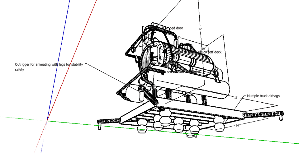For the Sub green screen work on stage, we opted for a simple manual gimbal system on air bags . It worked well and the underwater sequence in Season 2 episode 12 was very wonderful thanks to Terry Hutcheson and Dan Dixon our VFX magicians …