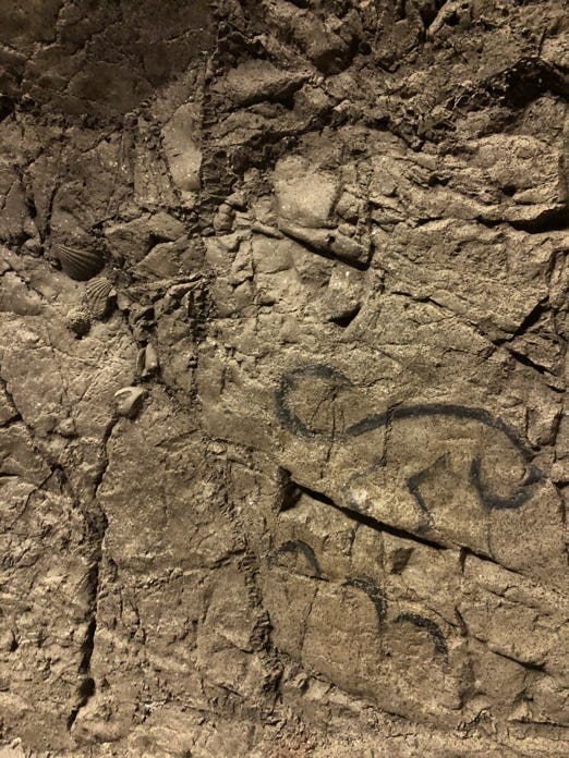 For EP 206 it was also scripted that we needed a larger cave set, so Baron built it at our Andre’s stage .. It was longer, higher and no ceiling. This time Director Amanda Row wanted a bit one sea related fossils and iridescence in the rocks .. Cam and team (Vincent Prokop and Kat Gunn scenic artists) made it all look great ..