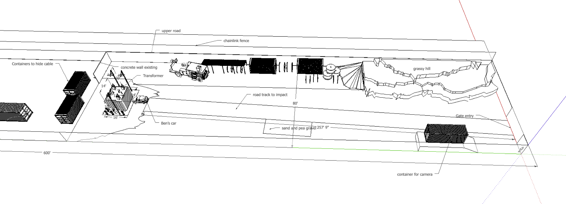 The shot needed Alex to drive his truck (which I hated) into a power transformer .. This is obviously not a small gag and could be unsafe, so with the help of Baron Construction and crew and SPFX, we decided to cable pull the truck into a gag built Transformer set piece at Riverview Hospital.. It went ok, looked amazing with great dressing, and VFX wizardry saved the day by augmenting the practical explosions ..