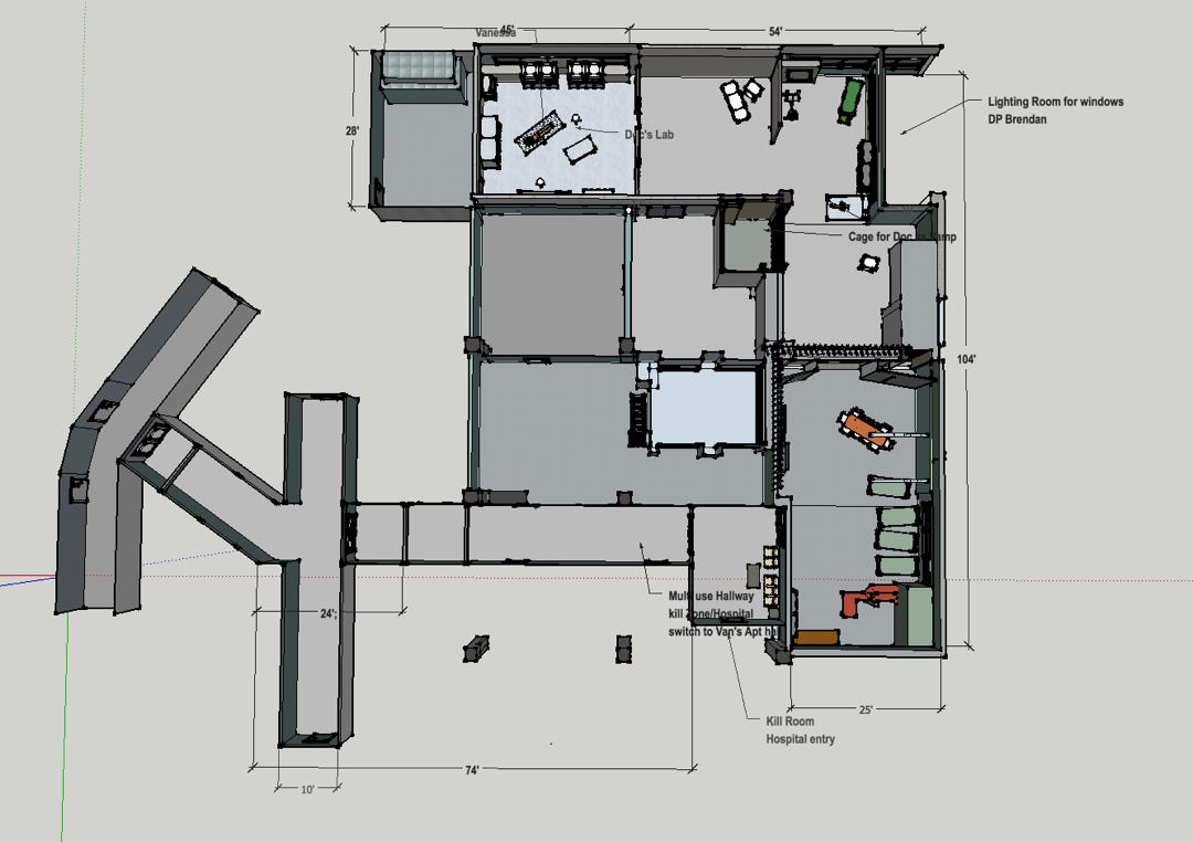We had the amazing studio space in the empty Georgia Postal Building, an incredible space to use as a Vampire’s playground. My teams and I repurposed the 3rd floor to be the hospital both pre and post apocalypse.. It was a very big set but we shot the hell out of it and it looked and functioned great…..