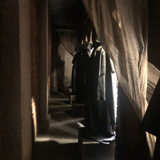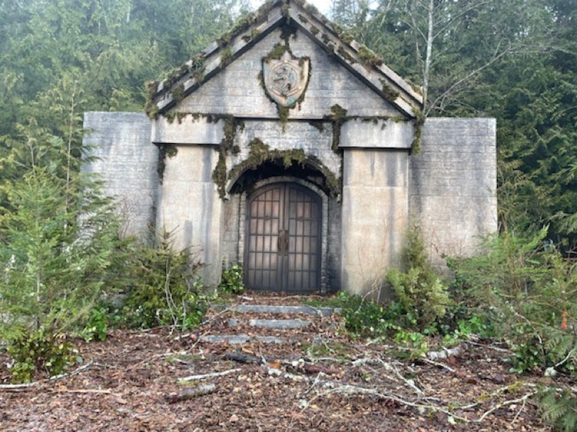 The idea was that there was an abandoned Abby just 30 miles from town where something terrible happened .. a massacre … in the 1920s. At the time the building had been bought by a sinister group and they had a secret room where they “bathed” in the radiation from a meteorite hidden in the floor. The rays gifted them with the power of luck … It ended poorly