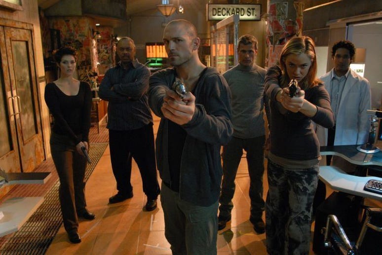 Originally the scripted world of Painkiller Jane, found Police Officer Jane living in a future US city on the verge of collapse. The Government was controlling and culling the population to keep the elite healthy and in luxury. With that in mind, I designed a Subway station that had been sealed up and forgotten and a squatters loft in an old abandoned office building. We needed large sets with series flexibility and lots of textures and tones that lit up and back with slight lighting changes for mood and time of day. In Jane’s pad we used brick details, old ad signs as illumination and installed industrial air ducting to allow for longer shots without exposing the lack of ceilings. It worked really well. Dressing was an assortment of cast off furniture and remnant industrial details. An accessible steel stairway and an (one floor and a half) elevator and brick/concrete hallway added realism.