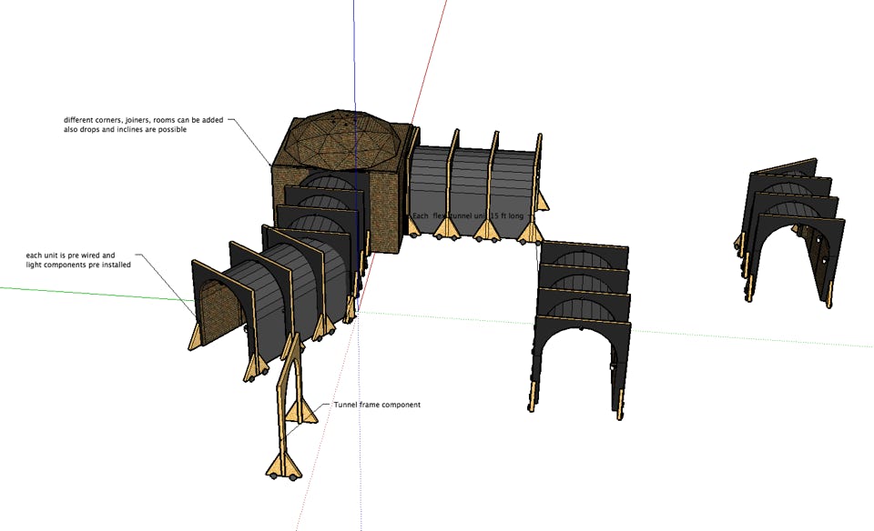 I designed a tunnel with emergency doors and a refurbished subway car that was used as a medical lab.