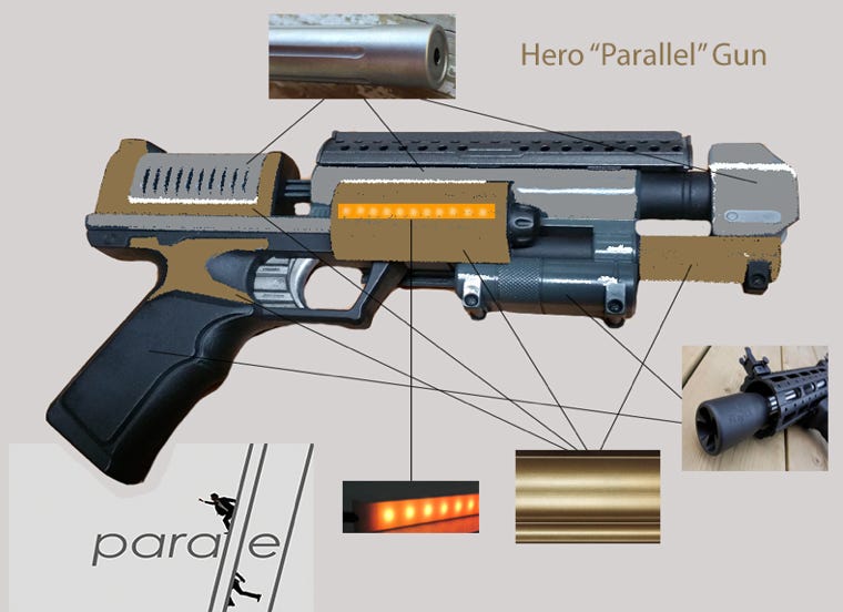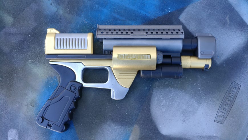 The “Future” weapon we had made for the show … I designed it and a fellow in Florida fabricated it … It was fine but I’d have made it here if we had the time.