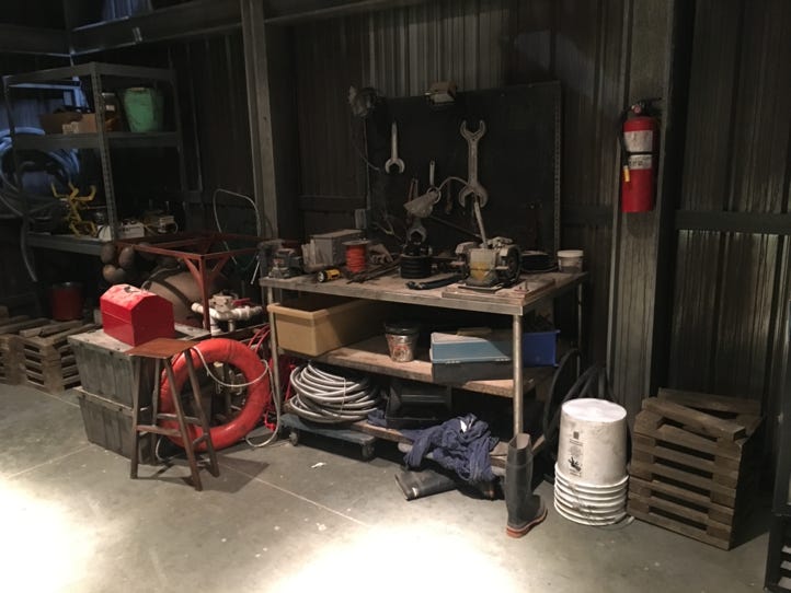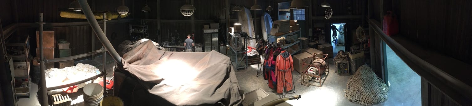 Ben’s House boat is another important set on Stage D2. It is where one of our main characters calls home and much Drama and dialogue is written to .. Walls and ceilings wild and it feels, in scale like a traditional houseboat.