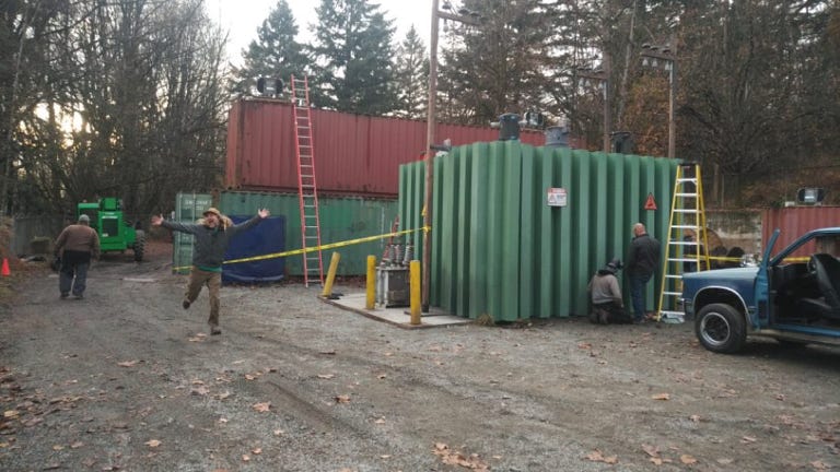 The shot needed Alex to drive his truck (which I hated) into a power transformer .. This is obviously not a small gag and could be unsafe, so with the help of Baron Construction and crew and SPFX, we decided to cable pull the truck into a gag built Transformer set piece at Riverview Hospital.. It went ok, looked amazing with great dressing, and VFX wizardry saved the day by augmenting the practical explosions ..