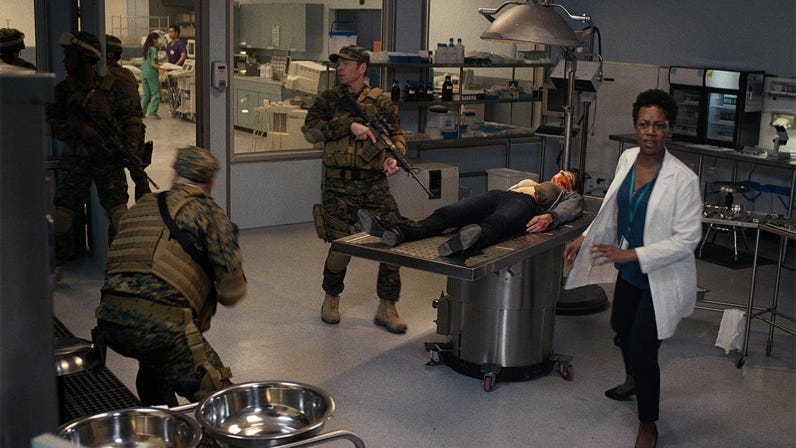 We had the amazing studio space in the empty Georgia Postal Building, an incredible space to use as a Vampire’s playground. My teams and I repurposed the 3rd floor to be the hospital both pre and post apocalypse.. It was a very big set but we shot the hell out of it and it looked and functioned great…..